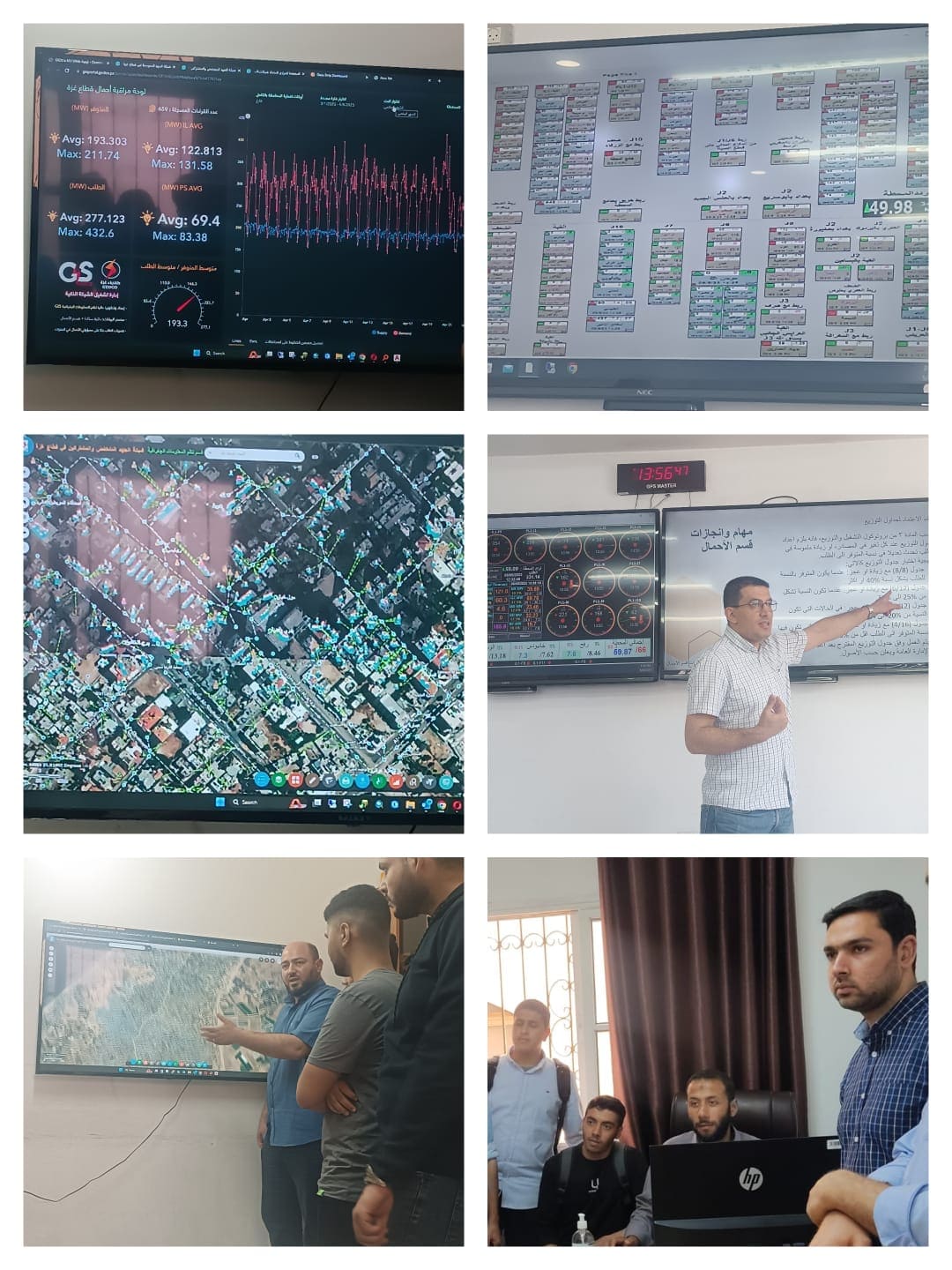 وخلال وصول الطلبة الى مقر الشركة كان في استقبالهم م. أحمد شعث مدير دائرة الحاسوب و م. محمد أبوشعبان مدير ادارة الشبكة الذكية و د.محمد مهدي -دائرة التشغيل و التحكم و م. يوسف أبو عزب قسم الGIS
