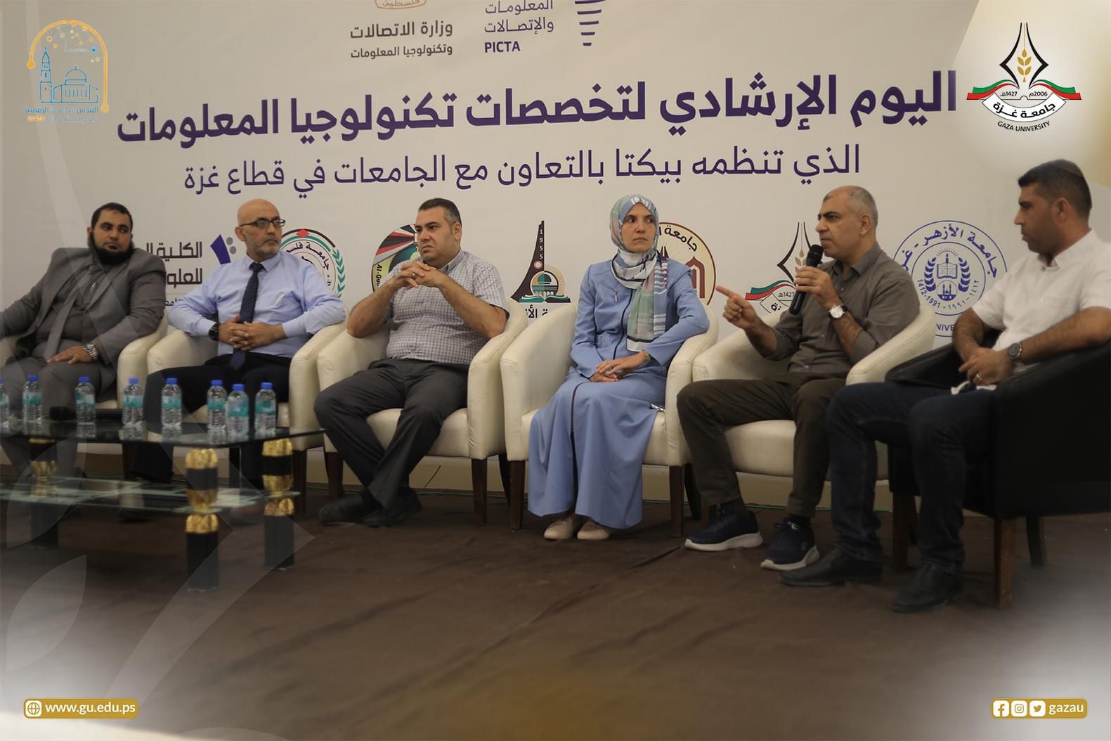 شاركت كلية الهندسة وتكنولوجيات المعلومات في اليوم الارشادي لطلبة الثانوية العامة (توجيهي) المنظم من نقابة تكنولوجيا المعلومات والاتصالات "بيكتا" وذلك يوم الأربعاء الموافق 26 تموز 2023 ممثلة بعميد الكلية الدكتور إبراهيم يوسف سكر ورئيس قسم هندسة وعلوم الحاسوب م. محمد خلة. وهدفة الفعالية بتعريف خريجي الثانوية العامة لعام 2023 من جميع محافظات قطاع غزة بتخصصات تكنولوجيا المعلومات وفرص العمل المتاحة في المجال. هذا وقت شاركت الكلية ايضا بعدد من مشاريع الطلبة من خلال طلبة النادي الهندسي التكنولوجي وكان لطلبة النادي بكلية الهندسة وتكنولوجيا المعلومات حضور متميز اشادة به إدارة النقابة والحضور من الطلبة. كما وتم تعريف خريجي الثانوية العامة على التخصصات المميزة والنوعية التي تقدمها الكلية ورشادهم لاختيار التخصص المناسب لدراستهم الجامعية من خلال أعضاء الهيئة التدريسية للكلية وأيضا من خلال أعضاء النادي التكنولوجي الهندسي.