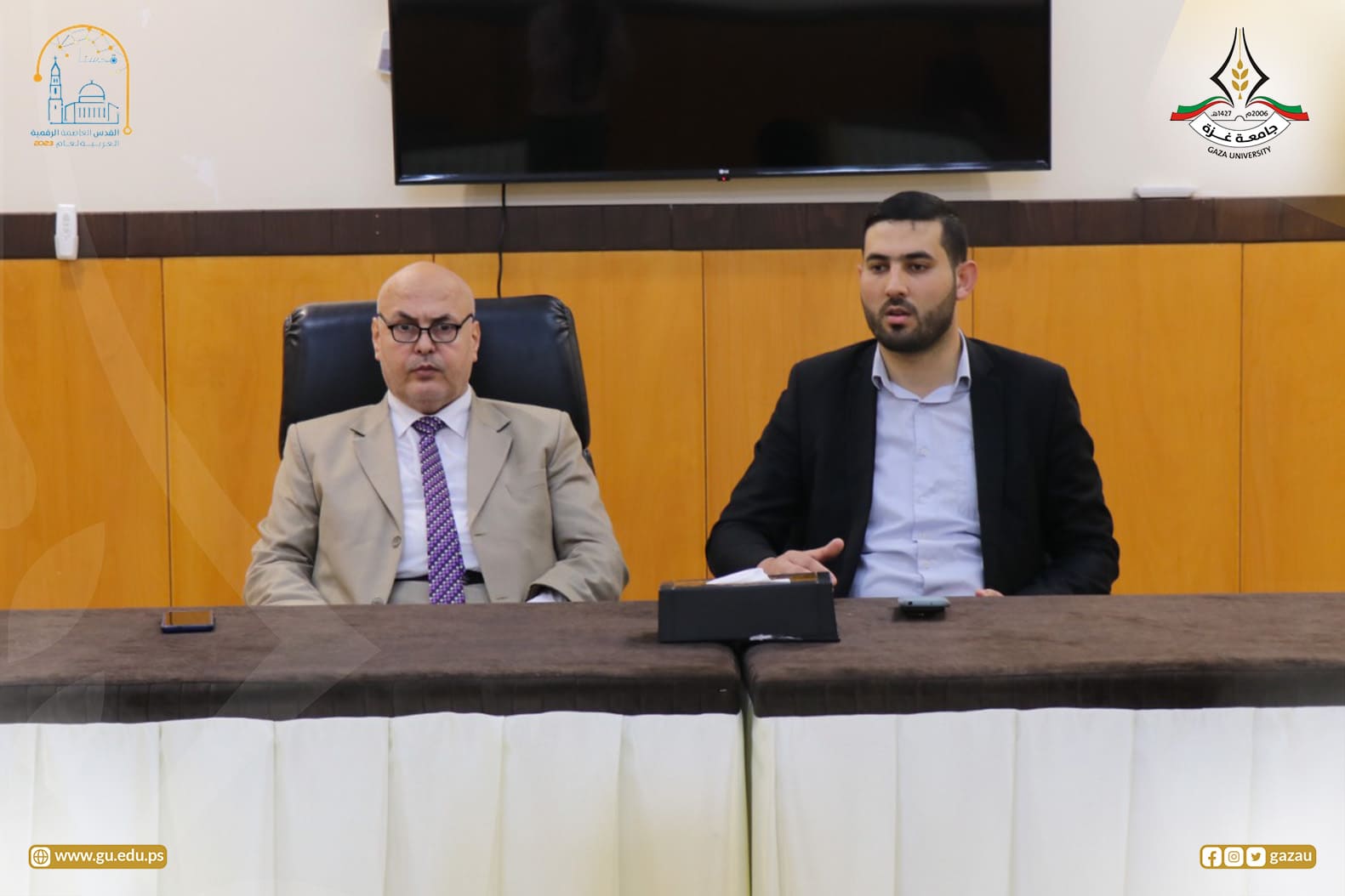 من جانبه تحدث سيادة القاضي الدكتور زياد الثوابتة قاضي المحكمة العليا في محاضرة قصيرة عن تشكيل المحاكم في فلسطين، موضحاً طبيعة عملها وبعض إنجازاتها، موضحاً استعدادهم لتقديم بعض التسهيلات لطلبة الجامعة.